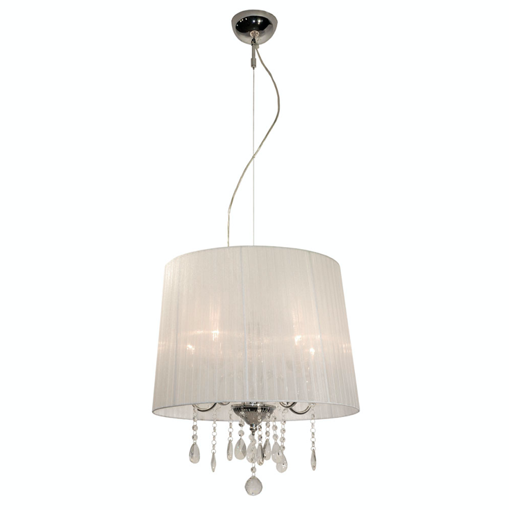 Crystal kristalli riippuvalaisin käyttää kolmea E14-kantaista polttimoa (max 40W), jotka tuottavat miellyttävän ja tasapainoisen valon. Kristallit heijastavat valoa näyttävästi ja varjostin pehmentää kokonaisuutta, luoden ylellisen ja kutsuvan tunnelman ilman häikäisyä.