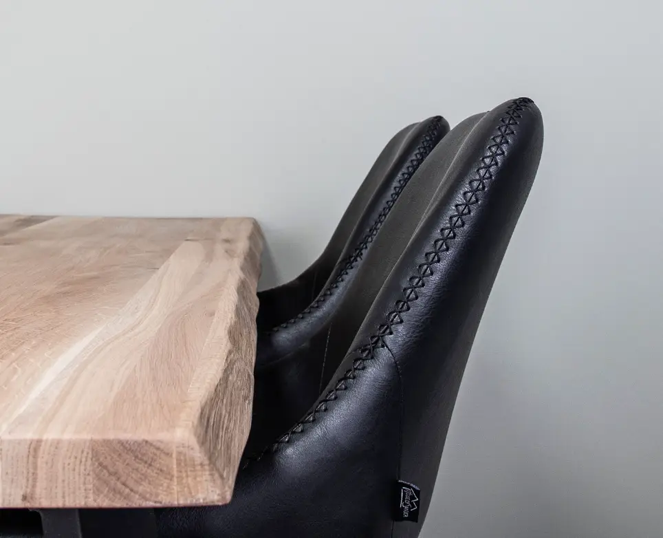 Curve ruokailuryhmä B4 mustilla jaloilla ja kahdeksalla Angel-tuolilla on näyttävä kokonaisuus, jossa moderni design kohtaa pehmeän aaltomaisen muotokielen. Pöydän kauniisti kaartuvat reunat erottavat sen edukseen ja tekevät siitä katseenvangitsijan, joka nostaa koko ruokailutilan ilmeen uudelle tasolle.