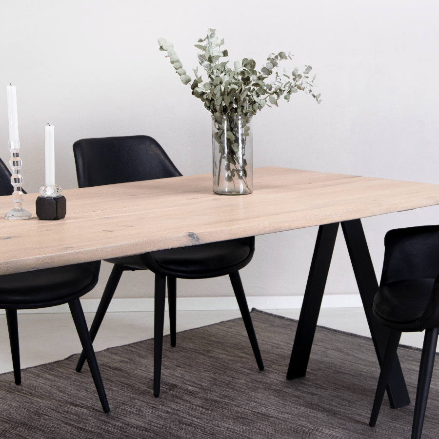 Curve ruokapöytä B4 mustilla jaloilla on rohkea ja näyttävä valinta moderniin ruokailutilaan. Pöydän epätasainen, aaltomainen reuna tekee jokaisesta pöydästä yksilöllisen ja tuo sisustukseen pehmeää, luonnollista muotokieltä, joka erottuu perinteisistä suorareunaisista pöydistä.