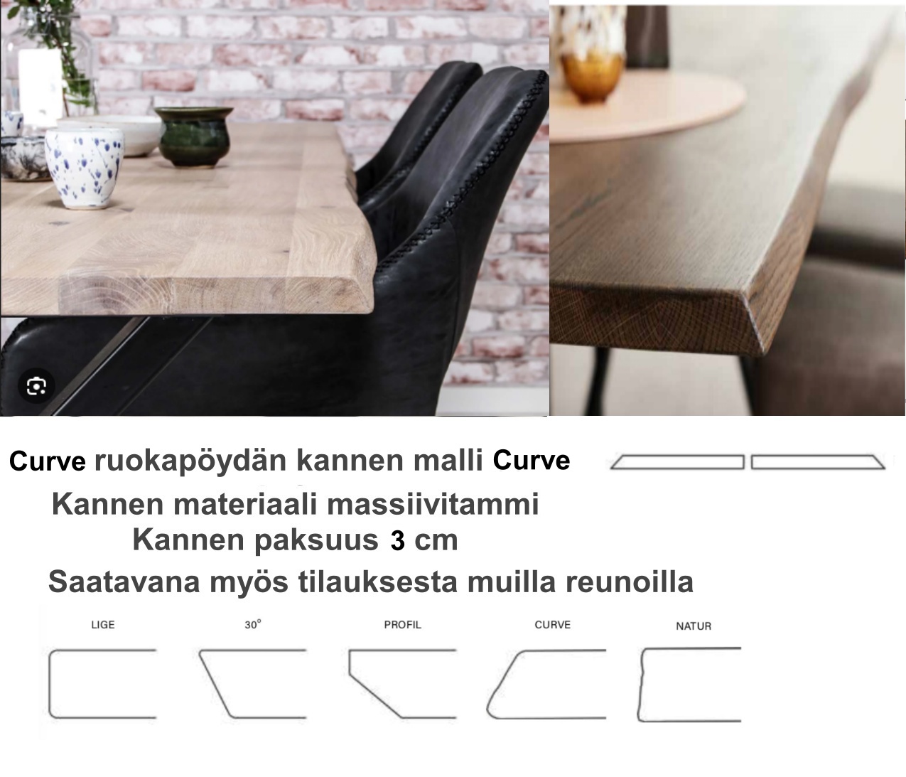 Curve-sohvapöydän 3 cm paksu massiivipuinen kannessa on 2 lankkua ja on viimeistelty öljyllä tai lakalla, ja se on saatavana kuudessa eri öljykäsittelyn sävyssä, jotta pöytä sulautuu täydellisesti omaan sisustukseesi. Lisähinnasta voit valita pöytään myös vaihtoehtoiset jalkamallit, jolloin kokonaisuus on helppo räätälöidä omien mieltymysten mukaan.