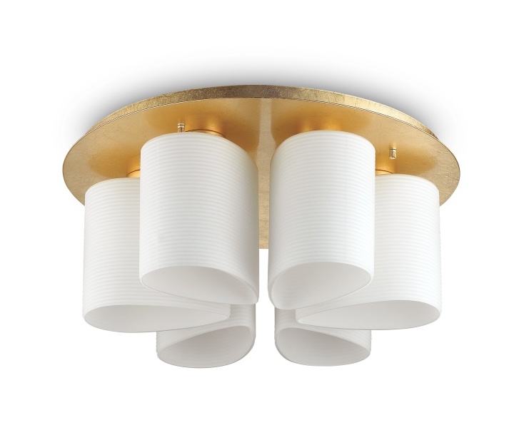 Tyylikäs Daisy PL6 kattovalaisin on näyttävä yhdistelmä hienostunutta designia ja laadukkaita materiaaleja. Kultasävyinen metallirunko tuo valaisimeen arvokkuutta, kun taas raidallisesta puhalletusta lasista valmistetut valkoiset varjostimet pehmentävät kokonaisuutta ja suodattavat valon kauniisti.