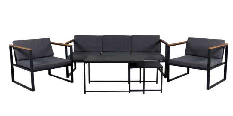 Dakar-sohvaryhmä on mukava ja tyylikäs valinta terassillesi tänä kesänä! 3 ist sohvan ja kahden nojatuolin lisäksi ryhmään sisältyy siihen sopivat kaksi erikokoista sohvapöytää sekä istuinpehmusteet. Sohvassa ja nojatuoleissa tyylikkäät puiset yksityiskohdat käsinojissa. Toimitus osissa.
