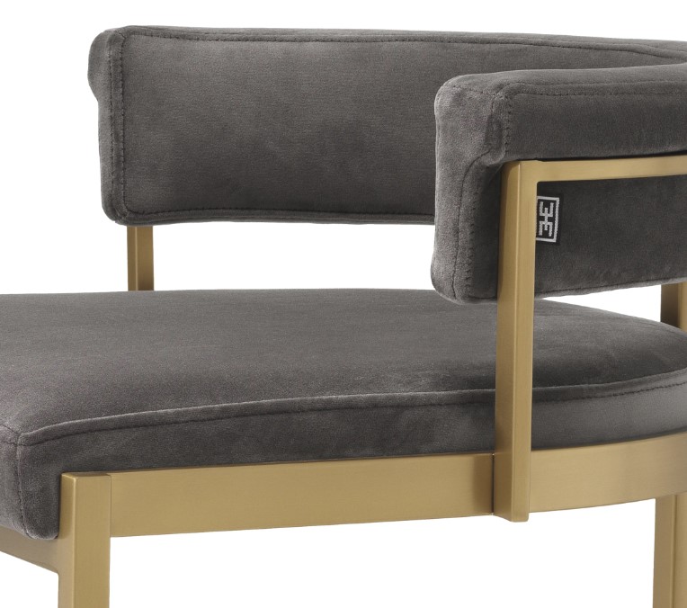 Dante-baarituoli tuo kotiisi näyttävää eleganssia yhdistämällä harmaan samettisen istuimen ja messinkisen rungon, jotka yhdessä luovat glamouria huokuvan kokonaisuuden. Sen hienostunut viimeistely sopii täydellisesti niin moderniin keittiöön kuin kotibaariin.