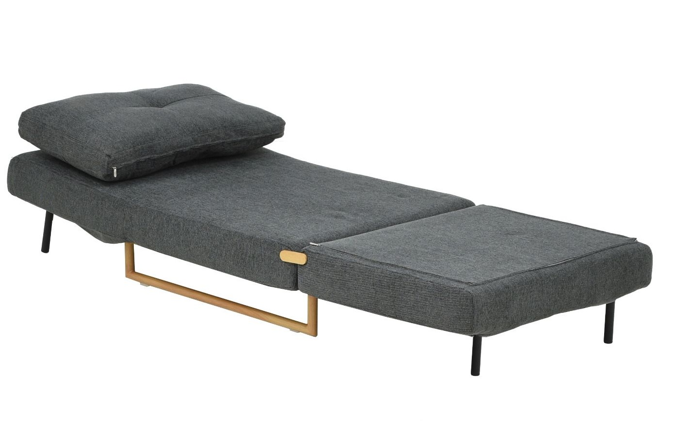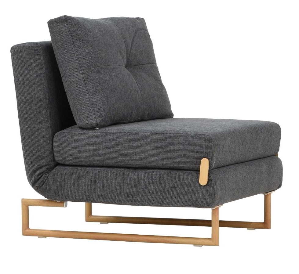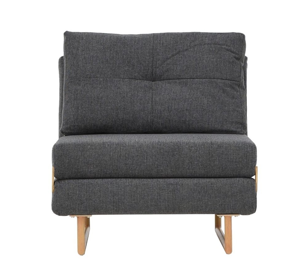Darien-vuodetuoli tarjoaa tyylikkään ja tilaa säästävän ratkaisun, joka toimii sekä mukavana lepotuolina että kätevänä vierasvuoteena. Tuolin selkänoja kallistuu useaan eri asentoon, mikä lisää istumisen ja lepäilyn mukavuutta. Harmaa, kulutusta kestävä polyesteriverhoilu yhdistettynä tammenvärisiin metallijalkoihin antaa kokonaisuudelle modernin ja huolitellun ilmeen.