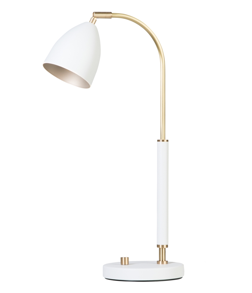Säädettävä varjostin mahdollistaa valon kohdistamisen juuri sinne missä sitä tarvitaan, olipa kyse työpöydästä, yöpöydästä tai lukunurkkauksesta. Jalustaan sijoitettu katkaisija tekee käytöstä vaivatonta ja korostaa valaisimen käytännöllistä muotoilua.
