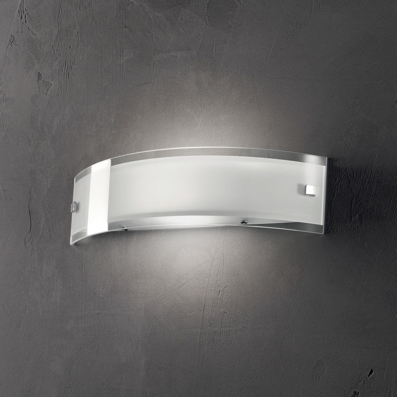 - Tyylikäs Denis seinävalaisin. Kolmiosainen varjostin joista kaksi läpinäkyvä sivulasilevy ja yksi kirkas lasi, jossa on valkoinen silkkipaino. Design Italia.
