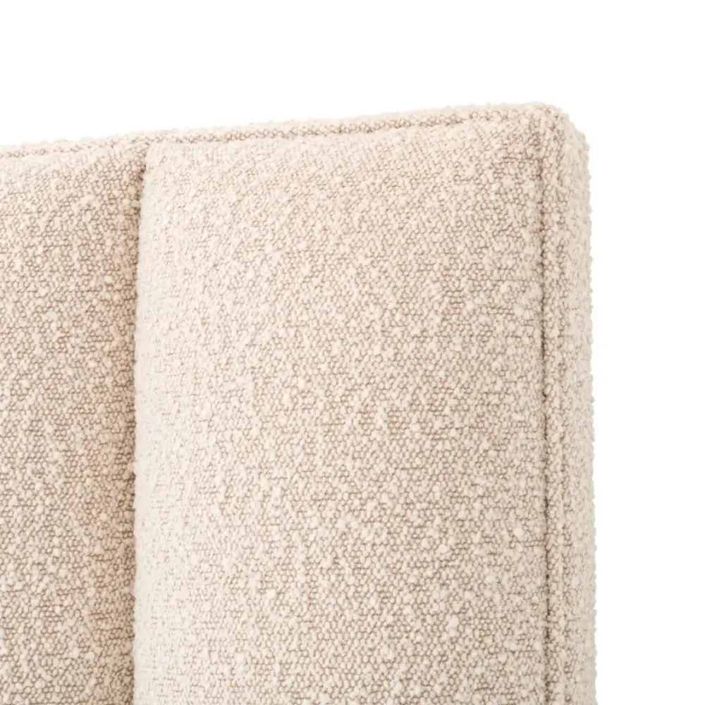 Ditmar-sängynpääty tuo makuuhuoneeseesi ylellisen ja rauhoittavan ilmeen beigen kangasverhoilunsa tai kermansävyisen bouclé-kankaan ansiosta. Sen harmoninen muotoilu viimeistelee makuutilan tyylikkäästi ja ajattomasti.