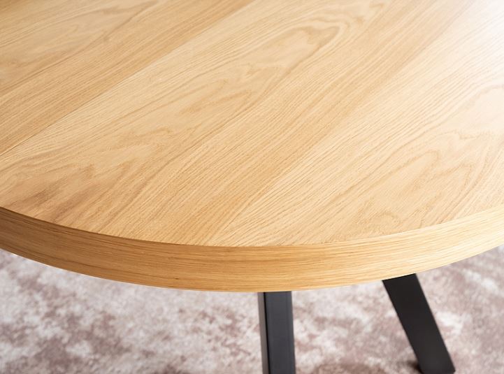 LV tammen sävy ja musta metallijalka luovat modernin, skandinaavisen ilmeen, kun taas MDF ja luonnonviilu takaavat kestävyyden ja pitkäikäisyyden päivittäisessä käytössä.