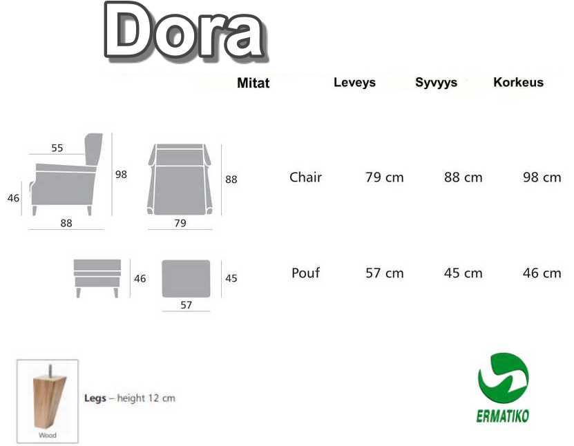 Verhoilukankaan 100 % polyesterikoostumus ja jopa 55 000 Martindalen hankauskesto tekevät Dora-rahista ihanteellisen arjen käyttöön, sillä kangas säilyttää kauneutensa käytössä vuodesta toiseen. Tämä rahi on täydellinen lisä nojatuolin tai sohvan pariksi ja tuo kotiisi lisää mukavuutta ja tyyliä.