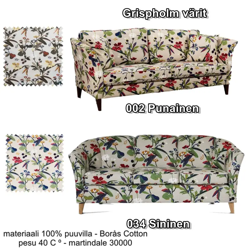 Verhoiluväreissä on tarjolla Connect-kankaat, ja jalkavaihtoehtoina löydät useita tyylikkäitä sävyjä, kuten koivu, tammi, pähkinä, mahonki, ruskea, valkoinen, musta ja wenge. Rungon vaneri- ja puurakenne yhdistettynä HR-35 -laatuiseen istuinpehmusteeseen takaa rahin erinomaisen kestävyyden ja käyttömukavuuden.