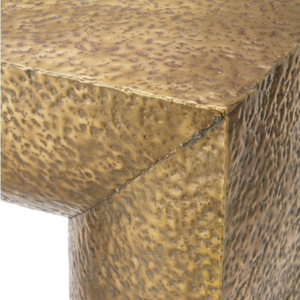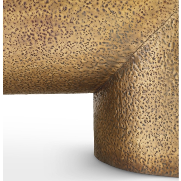 Drayton kuuluu arvostettuun Eichholtzin artesaanisarjaan ja edustaa aitoa käsityötaitoa. Käsin taotut, hienovaraiset vasaroinnin jäljet tuovat pintaan elävää tekstuuria, syvyyttä ja yksilöllisyyttä – jokainen pöytä on ainutlaatuinen yksilönsä. Rohkea muotokieli ja lämmin metallipinta tekevät tästä sohvapöydästä taidokkaan sisustuselementin.