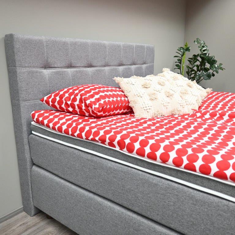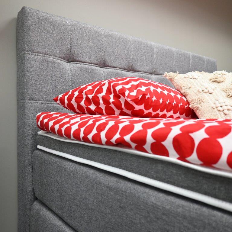 Dream-jenkkisänky on verhoiltu tyylikkäällä vaaleanharmaalla Malmo 90 -huonekalukankaalla ja valkoisella stretch-kankaalla, jotka yhdessä tuovat sängylle modernin ja raikkaan ilmeen. Verhoilu kestää käyttöä ja säilyttää kauniin ulkonäkönsä pitkään, tehden sängystä sekä käytännöllisen että näyttävän makuuhuoneen keskipisteen.