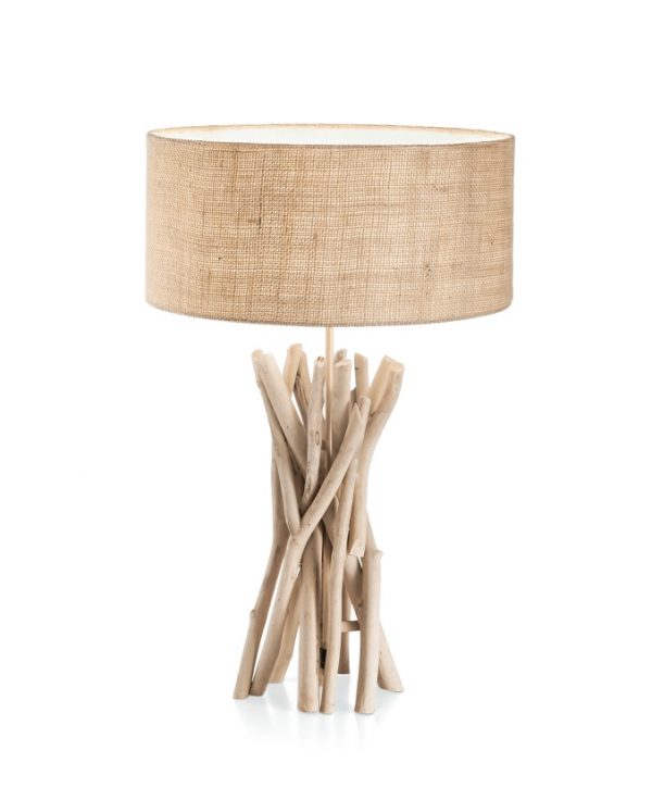 - Tyylikäs Driftwood pöytävalaisin. Metallirunko. Koriste varret luonnonpuuta. Varjostin päällystetty kankaalla. Design Italia.