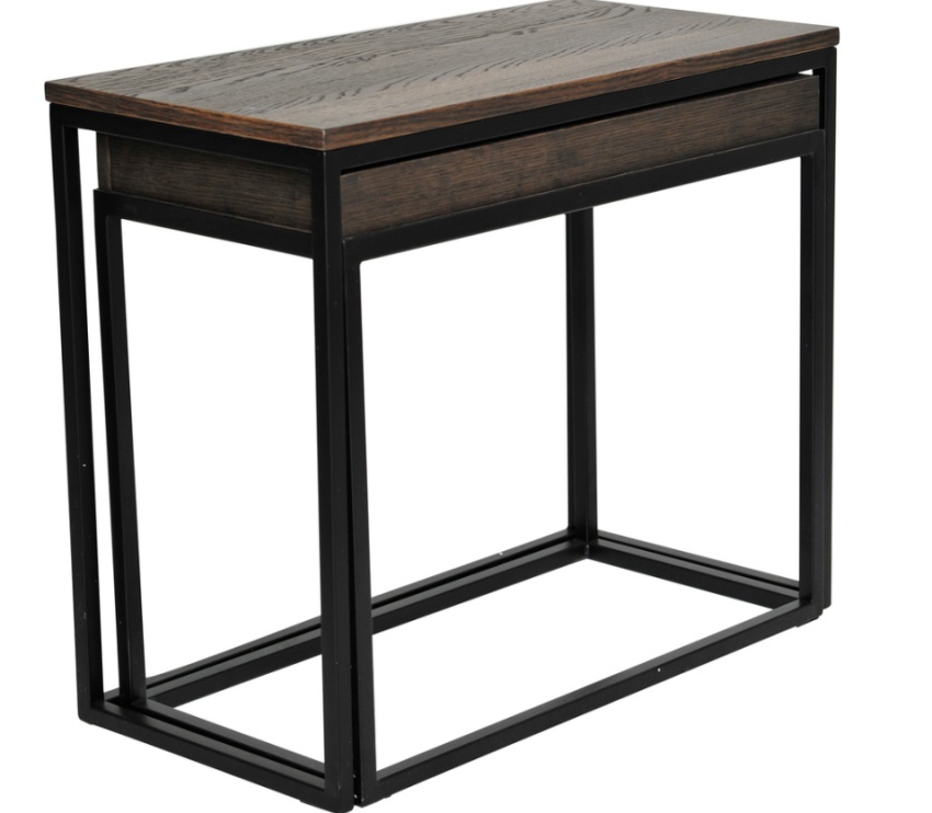 Duett sarjapöytä yhdistää tyylin ja toiminnallisuuden kahden erikokoisen pöydän muodossa, jotka täydentävät toisiaan täydellisesti. Vankka metallirunko ja tummanruskea kansi luovat kestävän ja ajattoman kokonaisuuden, joka sopii monenlaisiin sisustuksiin. Pienemmässä pöydässä oleva kätevä lokero tarjoaa säilytystilaa pienille tavaroille, pitäen tilan siistinä ja järjestyksessä. Pöydät toimitetaan osina, ja kokoaminen on helppoa.