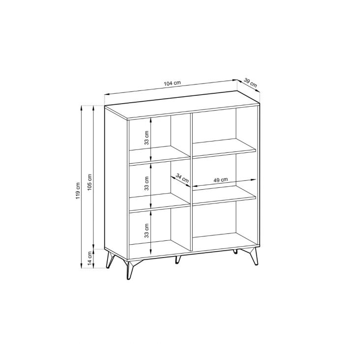 Kaapin sisäpuolelta löytyy kaksi välihyllyä molemmilta puolilta väliseinää, mikä tarjoaa runsaasti tilaa tavaroiden siistiin järjestelyyn. Push-to-open -mekanismi tekee ovien käytöstä sulavaa ja modernia, ja koko 103,5 × 39 × 119 cm sopii erinomaisesti niin olohuoneeseen, eteiseen kuin makuuhuoneeseenkin.