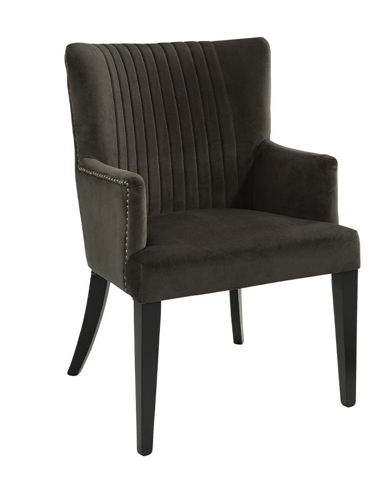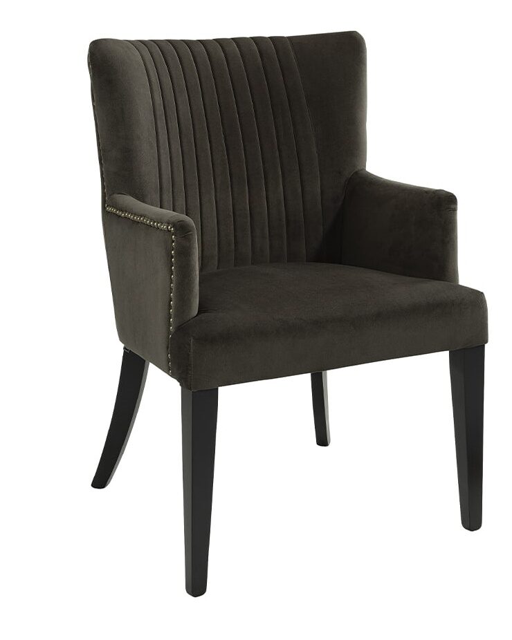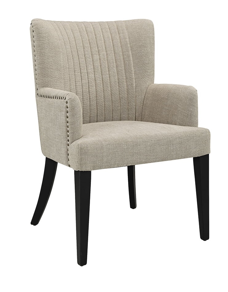 Dylan-ruokapöydän tuoli yhdistää elegantin kangasverhoilun ja sirojen nojatuolimallien mukavuuden, tuoden tilaan keveyttä ja tyylikkyyttä. Saat valittua joko hiekansävyisen pellavaverhoilun massiivimäntyjaloilla tai tummanruskean samettikankaan koivujaloilla, jolloin tuoli sulautuu täydellisesti erilaisiin sisustuksiin.
