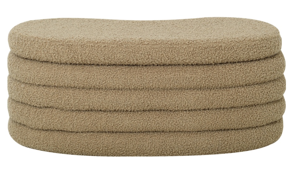 Ebb penkki tarjoaa tyylikkään säilytysratkaisun ja toimii monipuolisena sisustuselementtinä. Penkissä beige lampaankarvajäljitelmä. Kauniisti muotoiltu rahi tuo kotiin sekä käytännöllisyyttä että pehmeää eleganssia.