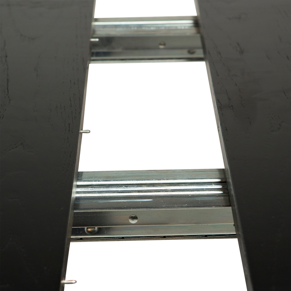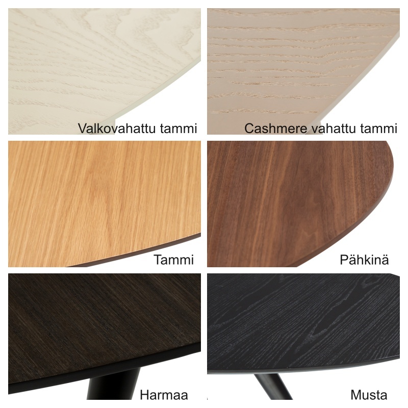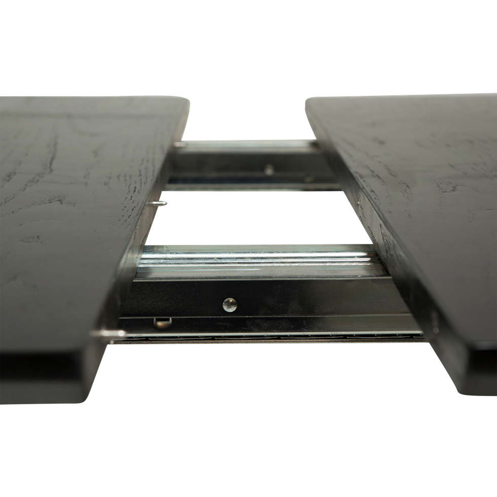 Pöydässä on kaksi erillistä jatkopalaa, jotka on helppo asentaa liukuvien metallikiskojen ansiosta. Jatkettuna pöydän pituus kasvaa jopa kolmeen metriin, jolloin sen äärelle mahtuu 12–14 tuolia – täydellinen suurille perheille ja juhlahetkiin. Pöytäkansi on saatavilla mustana ja harmaana saarniviiluna, pähkinäviiluna sekä tammen eri viimeistelyillä, jotka tarjoavat runsaasti vaihtoehtoja juuri omaan sisustukseesi.