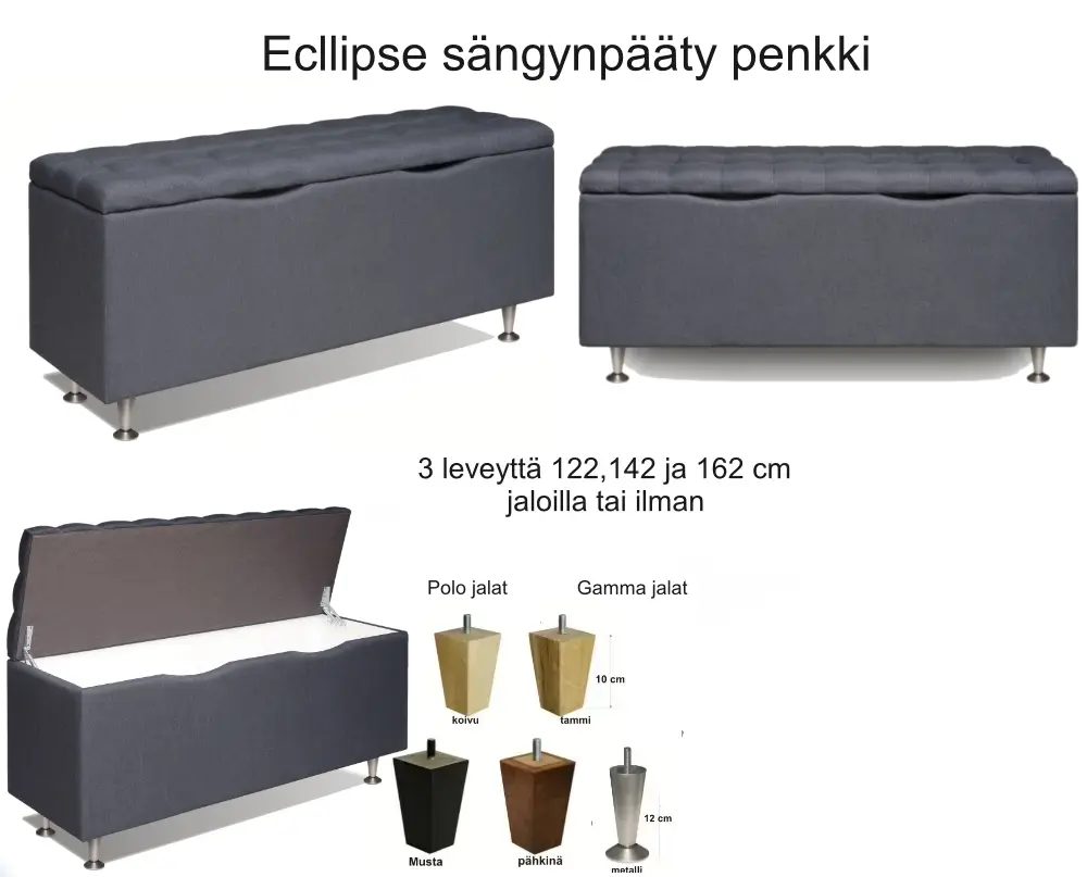 Eclipse-sängynpääty on suorakaiteen muotoinen jossa sisäänotot joka tekee päätyyn ruutumaisen kuvion. Eclipse sängynpääty luo makuuhuoneeseen ylellisen ja huolitellun ilmeen. Päädyllinen sänky tekee sängystä näyttävän kokonaisuuden ja sulautuu vaivatta niin moderniin, klassiseen kuin minimalistiseen sisustukseen.