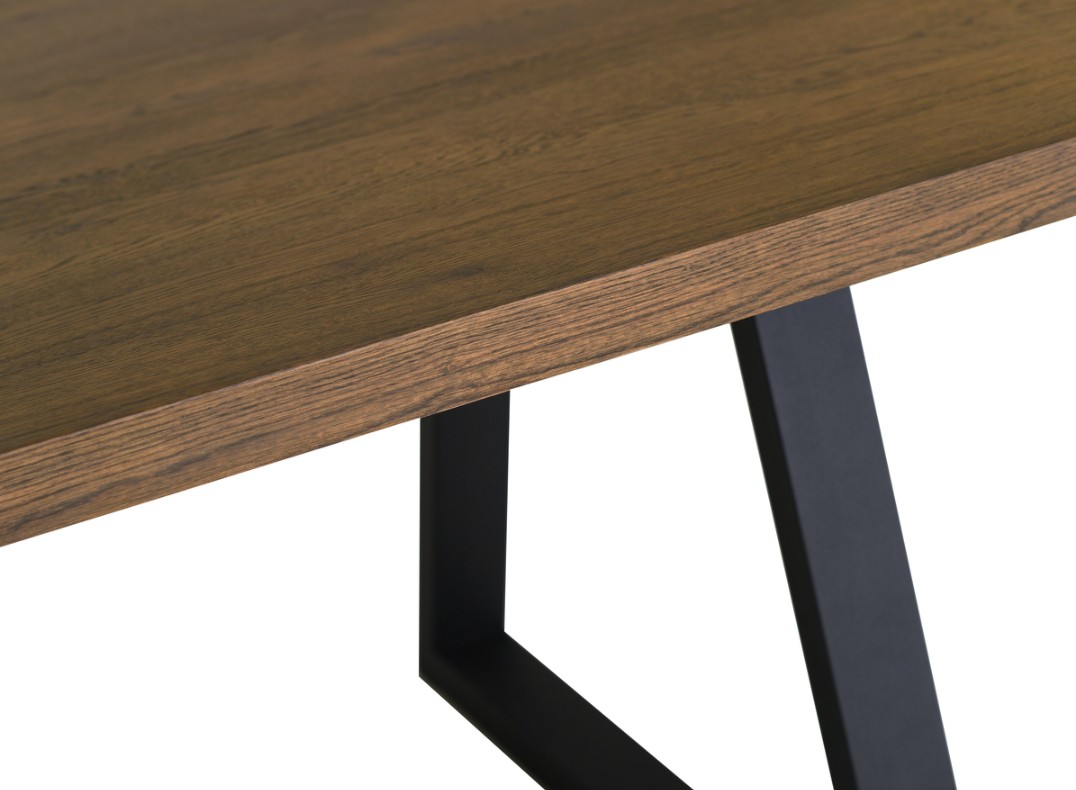 Eiken ruokapöytä yhdistää luonnollisen tammen kauneuden ja modernin metallirungon ryhdikkään ilmeen. Lakattu tammiviilu tuo tilaan lämpöä ja aitoja puunsyykuvioita, jotka tekevät jokaisesta pöydästä persoonallisen ja kestävän. Selkeälinjaiset mustat metallijalat luovat kevyen, mutta vankan kokonaisuuden, joka istuu saumattomasti niin skandinaaviseen, moderniin kuin teolliseen sisustukseen.