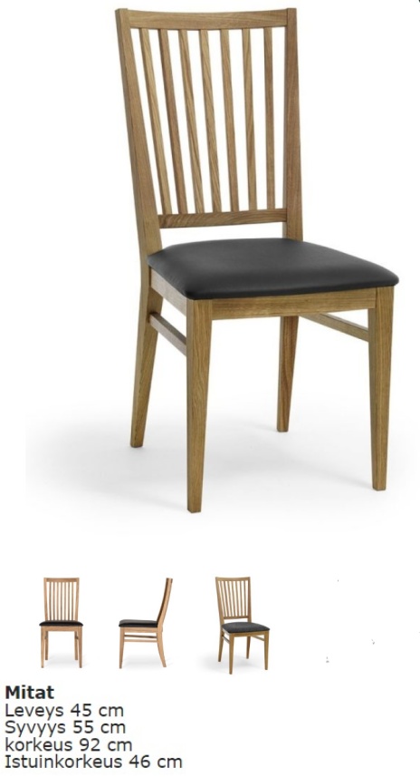 Ruokapöytä on valmistettu helppohoitoisesta öljytystä massiivitammesta, joka kestää käyttöä ja säilyttää kauniin pintansa pitkään. Halutessasi voit yhdistää pöytään kuvan mukaiset Ekliden-tuolit mustalla nahkaverhoilulla, jolloin kokonaisuus on yhtenäinen ja viimeistelty. Toimitus tapahtuu osittain kasattuna.