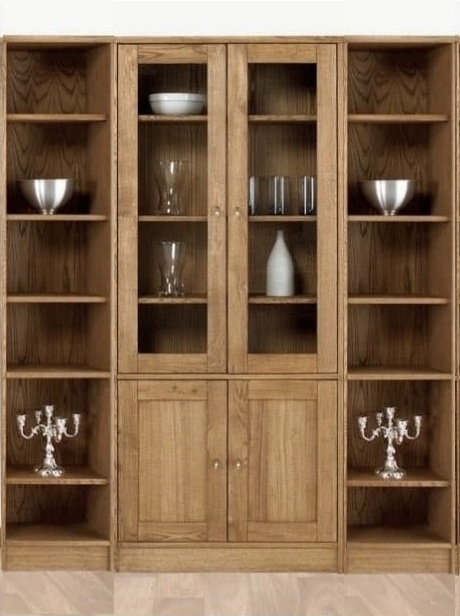 Kapeat avohyllyt tarjoavat kevyttä ja ilmavaa säilytystilaa kirjoille ja sisustusesineille, kun taas keskiosan leveä vitriini lasiovilla mahdollistaa kauniin ja suojatun esillepanon astioille tai arvokkaille esineille. Kokonaisuuden osat voidaan järjestää vapaasti omaan tilaan ja makuun sopivaksi.
