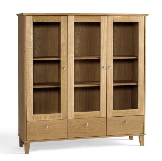 Vitriinin alaosassa on kolme tilavaa laatikkoa, jotka sopivat täydellisesti astioille, liinavaatteille tai muille kodin tarvikkeille. Yläosan lasiovien takana olevat korkeussäädettävät tammihyllyt mahdollistavat kauniin esillepanon ja joustavan säilytyksen juuri omiin tarpeisiin.