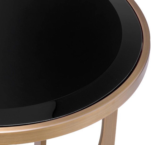 Elegance sivupöytä tuo kotiisi modernin muotoilun ja ajattoman eleganssin, joka täydentää vaivattomasti minkä tahansa sisustuksen. Messingin sävyinen runko ja musta lasipöytätaso muodostavat ylellisen kokonaisuuden, joka vangitsee katseen ja lisää tilaan hienostunutta ilmettä.