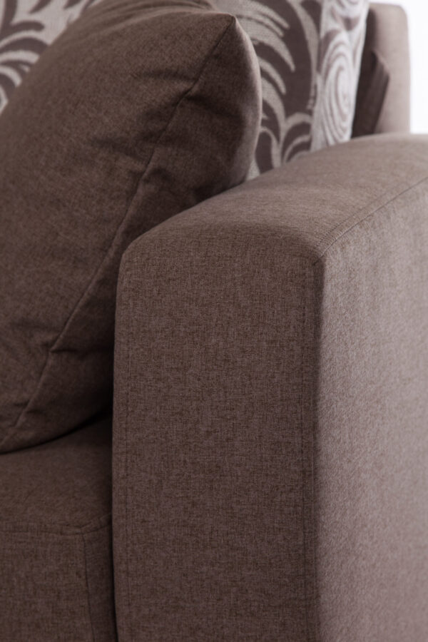 Voit valita verhoilun yksivärisenä kankailla Aragon, Hygge, Monolith tai New Malmo – kaikki ajattomia ja kestäviä vaihtoehtoja. Haluatko lisää ilmettä? Valitse kuviollinen Adria-kangas! Saat sen joko kokonaan kuviollisena tai yhdistelmänä, jossa esimerkiksi runko on yksivärinen ja selkänojatyynyt kuviollisia – tai toisinpäin. Jos mielessäsi on jokin muu kangas, toteutamme senkin – ota vain yhteyttä asiakaspalveluumme, niin autamme mielellämme.