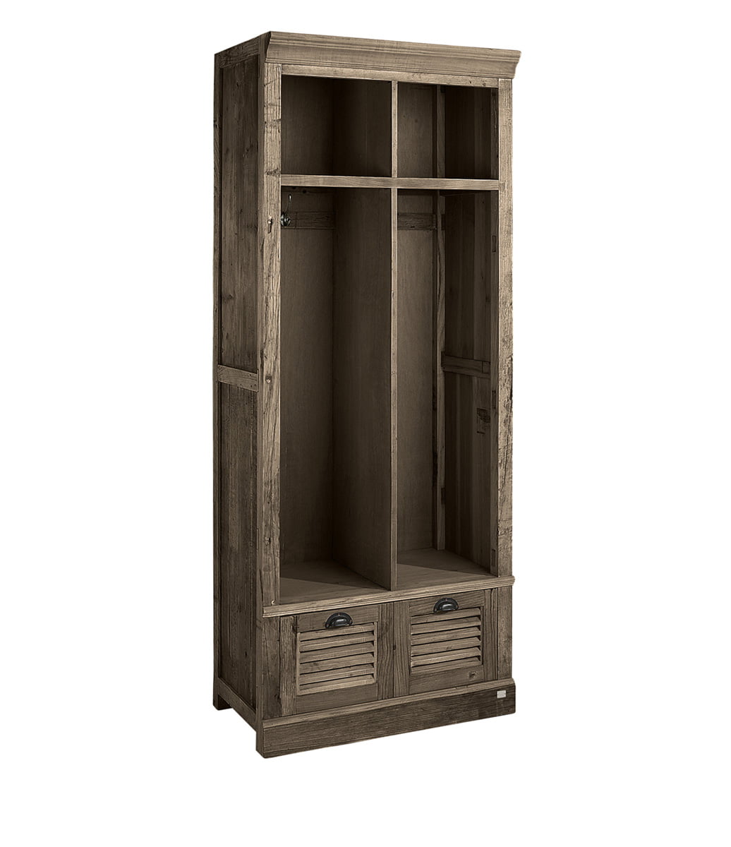 Elmwood vaatekaappi hurmaa upealla maalaistyylisellä ilmeellään, jossa vintage-henkiset metallivetimet ja antiikinharmaa Old Elm -pintakäsittely tuovat tilaan lämpöä ja autenttista tunnelmaa. Jalavapuu säilyttää kauniisti luonnolliset syyt, kuviot ja elävän pinnan — juuri nämä pienet halkeamat, naulanreiät ja värierot ovat osa Elmwood-sarjan uniikkia viehätystä.
