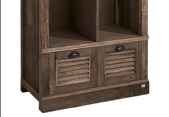 Kaapin runko on valmistettu massiivijalavasta ja MDF:stä, jotka yhdessä tuovat huonekaluun tukevuutta, pitkäikäisyyttä ja rustiikkista karismaa. Jalava on vahvaa ja kestävää puuta, joka vanhenee arvokkaasti ja saa lisää luonnetta vuosien saatossa. Useaan kertaan vahattu pinta viimeistelee sen käsittelemättömän, luonnonläheisen ulkonäön.