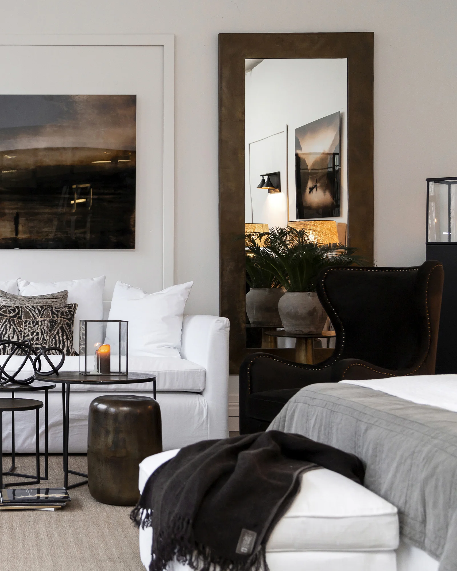 Antiikki messingin ja mustan sävyt tuovat tilaan hienostunutta ilmettä, ja laadukas alumiinirunko takaa peilin tukevuuden sekä pitkäikäisen käytön.