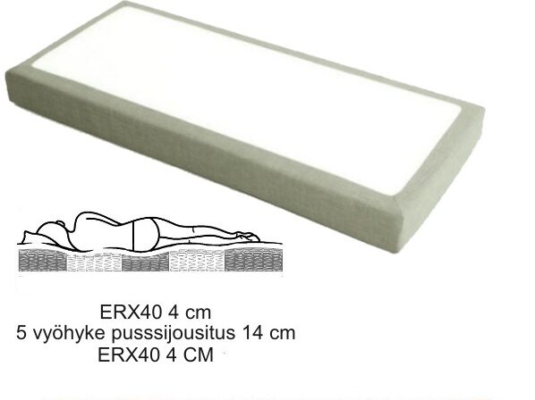 cm cm cm cm cm cm cm cm cm cm cm cm cm cm cm cm cm cm cm cm cm cm cm cm cm cm cmJoustinpatjan korkeus on ilmoitettu ilman sijauspatjaaKeskikova, Kova, Extra kova cmJousiston yllä ja alla ERX40 visco 4 cm, Reunalla vaahtomuovi E25 7 cm, Vanu 80g/m2, Vetoketju 3 sivulla, Verhoilu valinnainen verhoilukangas/ keskellä sterch kangas, 5 vyöhykkeinen pussijousitus korkeus 14 cmAce Kangas cmTäystakuu tuotteelle 2 vuottaTilaustuote kgViro cm cm cmErikoismittainen tuote