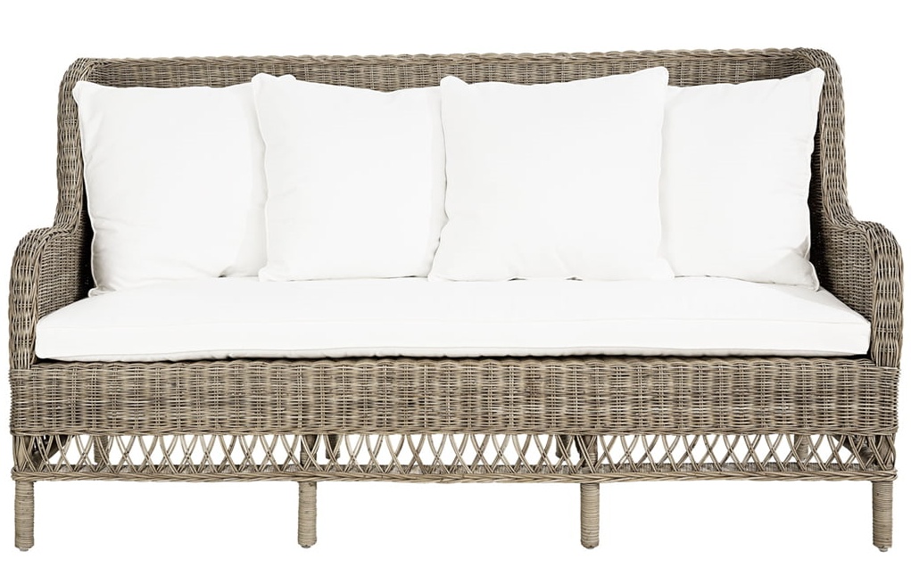 Estelle 3-istuttava rottinkisohva yhdistää harmaanruskean rottingin ja luonnonvalkoiset istuintyynyt, luoden luonnonläheisen ja tyylikkään kokonaisuuden, joka sopii täydellisesti erilaisiin sisustustyyleihin.