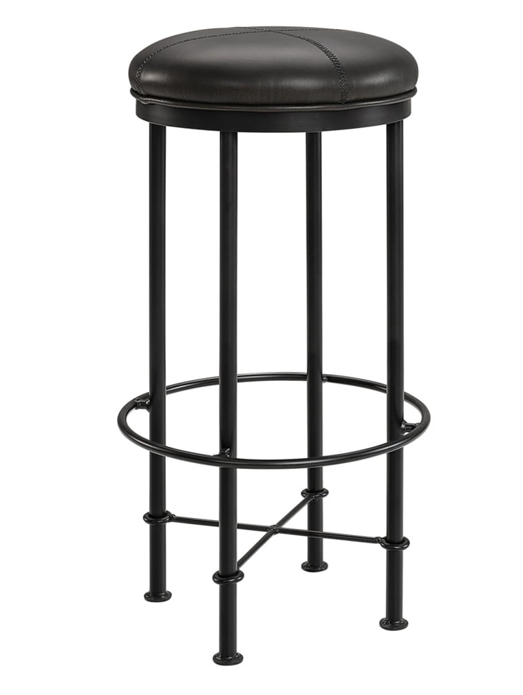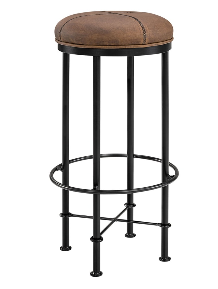 Mustan ja ruskean nahkaverhoilun vaihtoehdot täydentävät mustaa metallirunkoa, ja 39 cm halkaisija sekä 77 cm korkeus tekevät jakkarasta kompaktin, monikäyttöisen ja helppoon sijoitteluun sopivan.