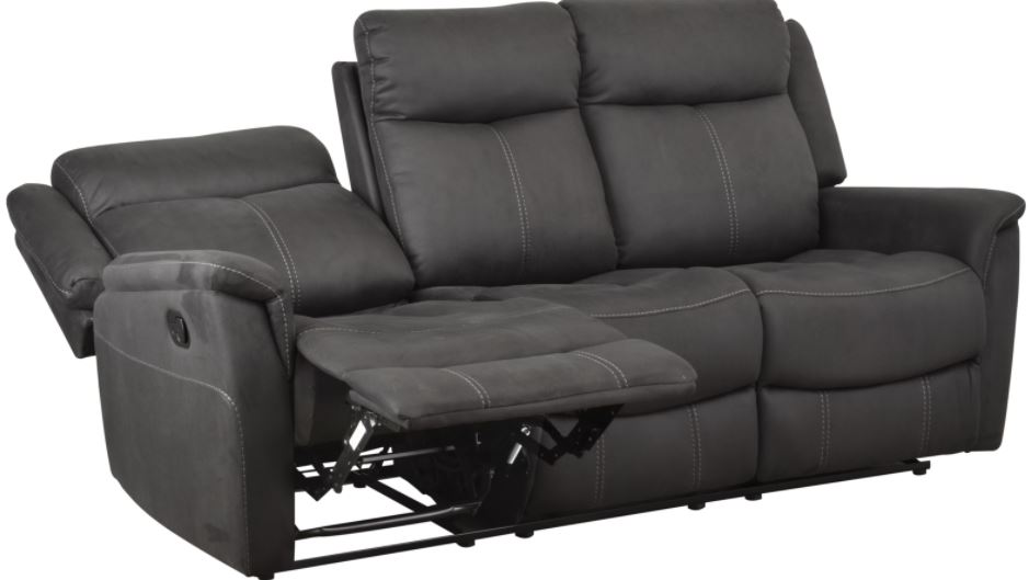 Falcon 3 istuttava reclinersohva yhdistää modernin muotoilun ja ergonomisen mukavuuden. Sen mustan harmaa mikrokuitukangasverhoilu yhdistettynä vaaleaan tikkaukseen luo elegantin ja ajattoman ilmeen, joka sopii monenlaisiin sisustuksiin.