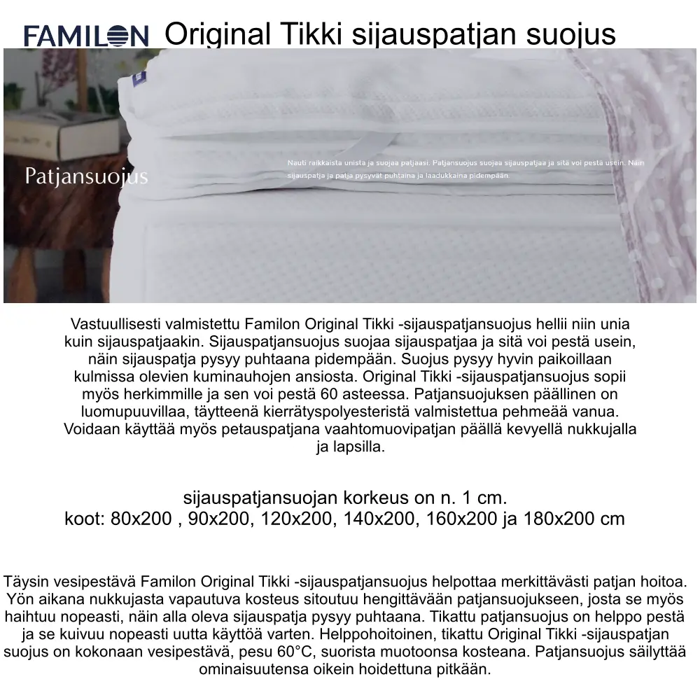 Sijauspatjan ydin on hengittävä Breathair®-3D-spiraalikuiturakenne, jossa ilma kiertää vapaasti ja kosteus haihtuu tehokkaasti. Materiaali ei ime kosteutta eikä varastoi lämpöä, mikä ehkäisee luonnollisesti bakteerien kasvua ja tekee patjasta erinomaisen valinnan myös herkille. Koko sijauspatja on vesipestävä, mikä tekee siitä pitkäikäisen ja helppohoitoisen ratkaisun arkeen.