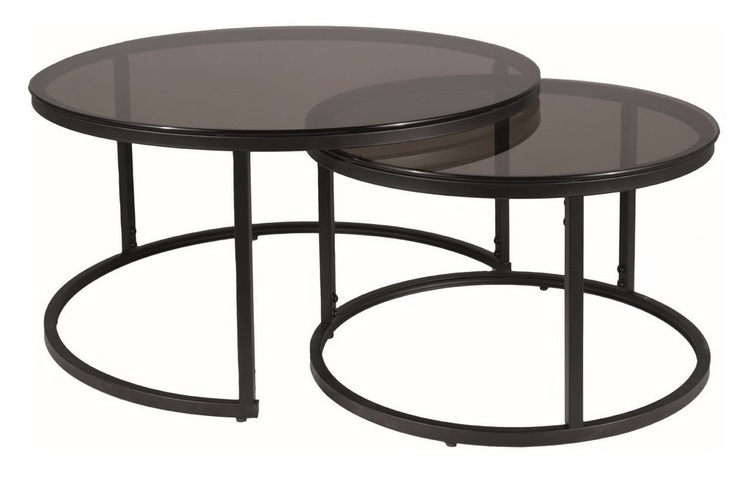 Vahva musta metallirunko ja karkaistu lasi takaavat pitkäikäisen rakenteen, ja kahden eri kokoisen pöydän yhdistelmä tarjoaa käytännöllisyyttä ja visuaalista tasapainoa.