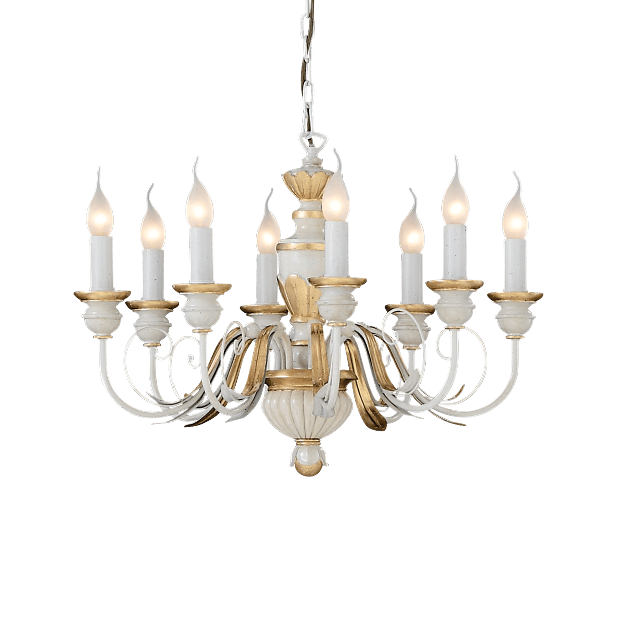 Tyylikäs Firenze SP5 riippuvalaisin huokuu klassista arvokkuutta ja italialaista käsityöperinnettä. Metallirunkoa koristavat käsinkoristellut kultaiset lehdet luovat rikkaan ja viimeistellyn ilmeen, joka tuo tilaan ylellisyyttä ja lämpöä. Antiikinkullan tai antiikinvalkoisen sävy tekee valaisimesta harmonisen osan klassista ja romanttista sisustusta.