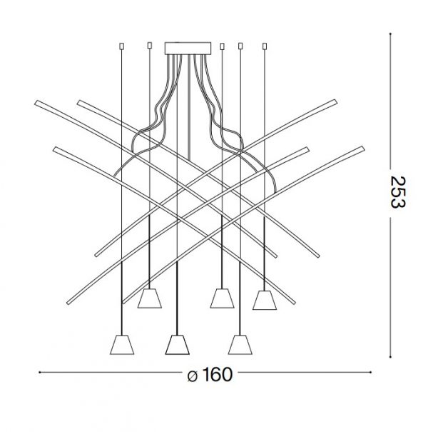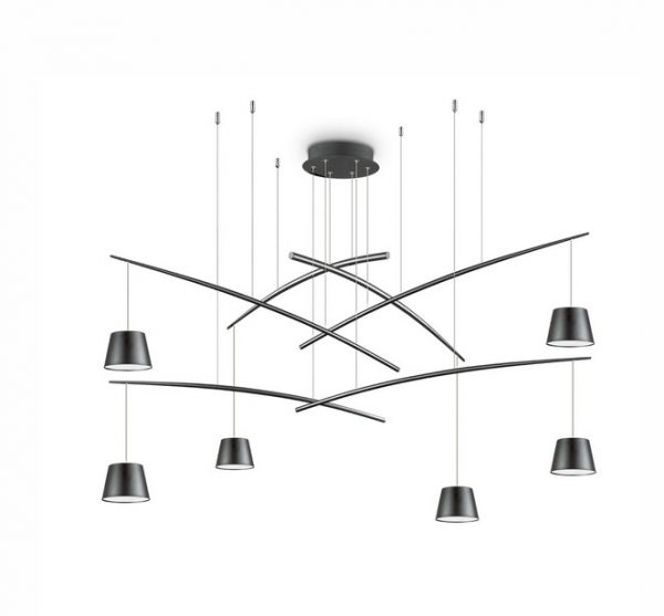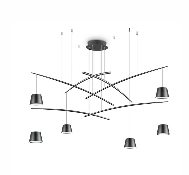 - Tyylikäs Fish SP6 riippuvalaisin, jossa meltalliset tuet ja teräskaapeli. Design Italia.