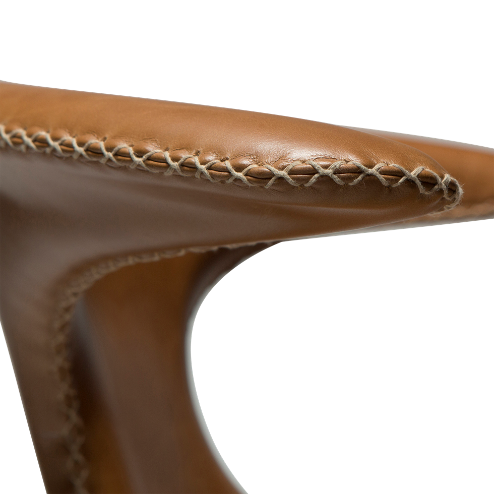 Tuolin istuin on verhoiltu vintage-keinonahalla, joka yhdistää kestävyyden ja miellyttävän tuntuman. Metallisessa jalassa on vakaa ja moderni rakenne, joka tukee istujaa ja varmistaa pitkäikäisen käytön. Ergonominen selkänoja lisää käyttömukavuutta ja tekee Flair-baarituolista erinomaisen valinnan päivittäiseen käyttöön.