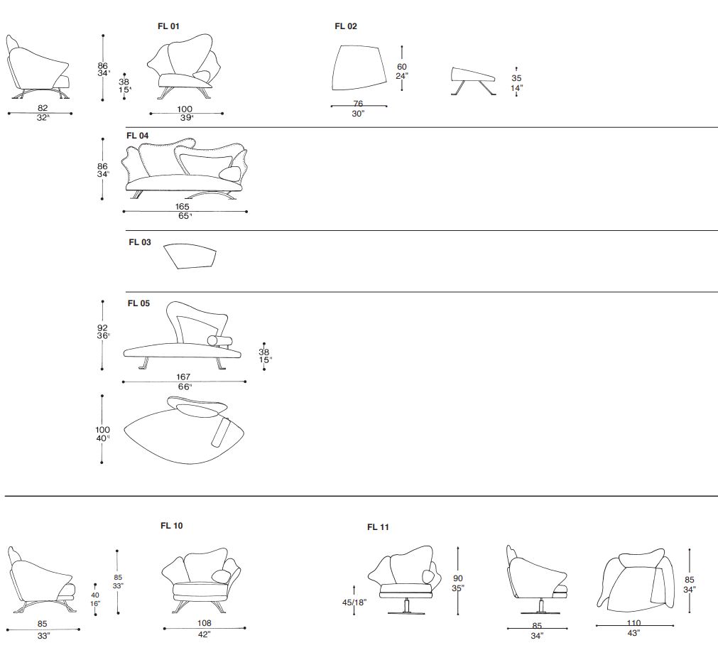 on aito italialainen desingsohva, joka on verhoiltuna kankaalla. Nojatuoli ja sohva olohuoneeseen tai vastaanottoon, joka muistuttaa kukkaa, jossa on pehmeä terälehden muotoinen selkä. Runko takorautaa joka on pehmustettu joustavalla polyuretaanivaahdolla. Jokainen nojatuoli ja sohva on ainutlaatuinen käsintehdyllä toteutuksella ja muotoilulla, ja niiden terälehdet ovat kaikki ainutlaatuisia. Flower sohvat ja nojatuolit voidaan verhoilla myös eri väreillä kukin osa tai materiaaleilla joita voit kysyä lisää asiakaspalvelustamme. Toimitus koottuna.