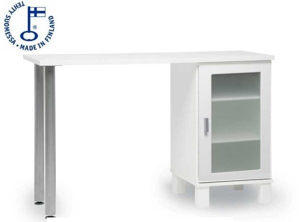 Fondi Läppäripöytä 33 tarjoaa 119 cm leveän ja 41 cm syvän työskentelytason, joka tekee työskentelystä sujuvaa. Iso avattava ovi pitävät työvälineet ja paperit siististi järjestyksessä, ja pöydän melamiinipinta sekä massiivipuiset jalat takaavat kestävyyden vuosiksi eteenpäin.