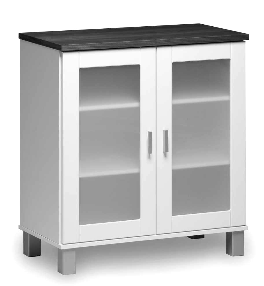 Valitse kannen väri useista sävyistä – saarni, tammi, betoni, antrasiitti tai musta – ja yhdistele valkoisiin tai harmaisiin jalkoihin. Kaksi korkeussäädettävää hyllyä tarjoavat runsaasti säilytystilaa, ja osittain koottuna toimitettava kaappi on helppo ja nopea asentaa.