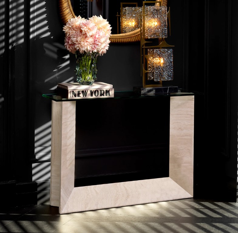 Fortuna-konsolipöytä tuo kotiisi modernia ylellisyyttä, laadukkaat materiaalit ja käytännölliset mitat, tehden siitä täydellisen valinnan näyttävään sisustukseen.