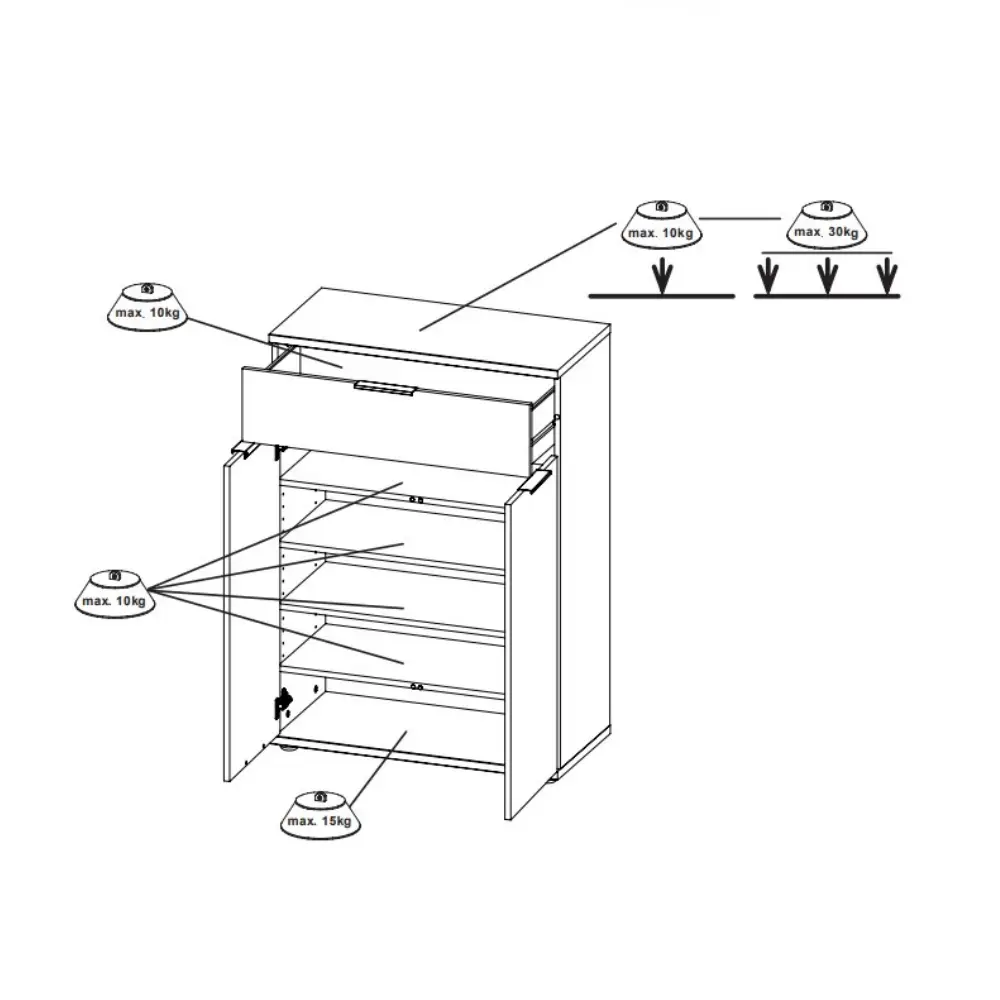 Fremont kenkäkaappi 2790 tarjoaa kahden oven taakse sijoitetut neljä korkeussäädettävää hyllyä, jotka antavat runsaasti tilaa kengille ja asusteille. Selkeä ja toimiva rakenne auttaa pitämään eteisen siistinä ja helposti hallittavana.