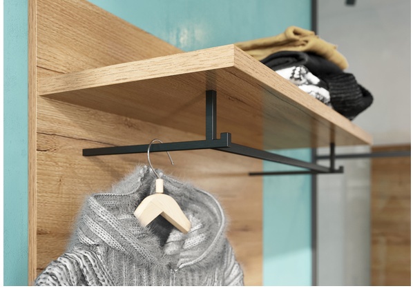 Hattuhylly ja viisi tukevasti muotoiltua vaatekoukkua tarjoavat runsaasti säilytystilaa takkeille, laukuille ja asusteille. Naulakko toimitetaan osina, mutta sen voi tilata myös valmiiksi koottuna lisähinnasta, mikä tekee käyttöönotosta erityisen vaivatonta.