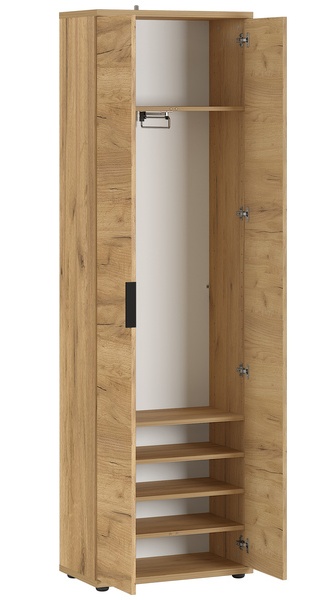 Fremont vaatekaappi 2796 tarjoaa neljä korkeussäädettävää hyllyä ja ulosvedettävän vaatetangon, joiden avulla järjestät vaatteet ja asusteet juuri haluamallasi tavalla. Selkeä ja toimiva rakenne tekee kaapista erinomaisen valinnan niin eteiseen kuin makuuhuoneeseenkin.
