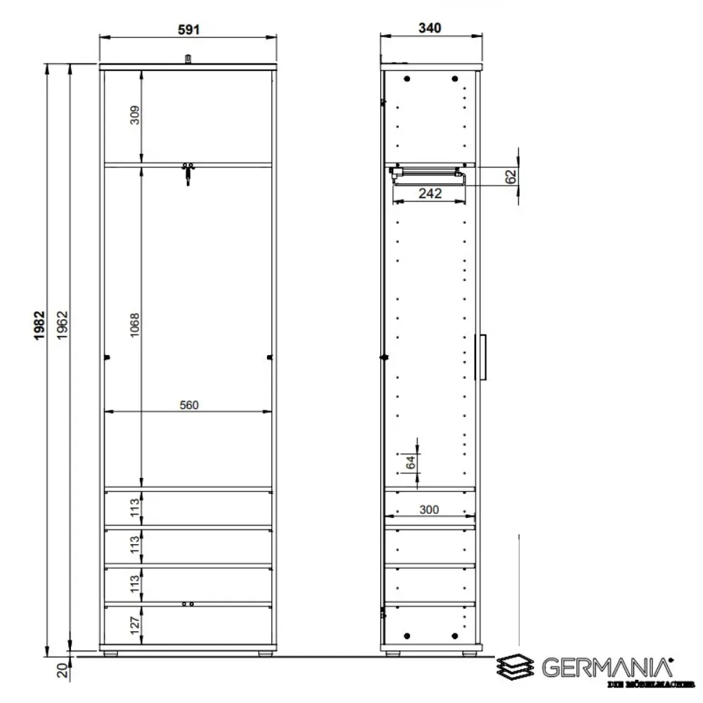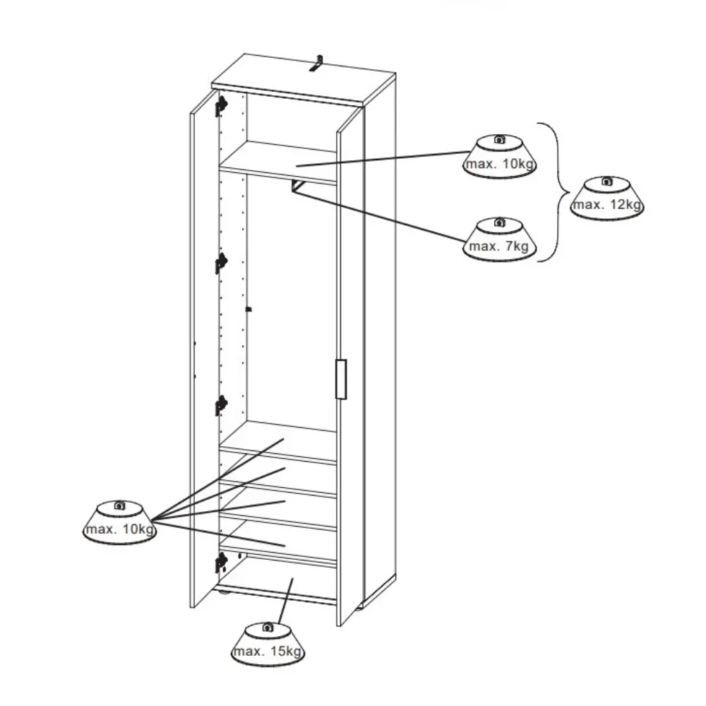 Struktuurikuvioitu kalustelevy ja melamiinihartsipinnoite takaavat vaatekaapille kestävyyden ja ajattoman ulkonäön. Metalliset vetimet ja huolitellut yksityiskohdat tuovat kokonaisuuteen modernia eleganssia, joka sopii täydellisesti nykyaikaisiin koteihin.