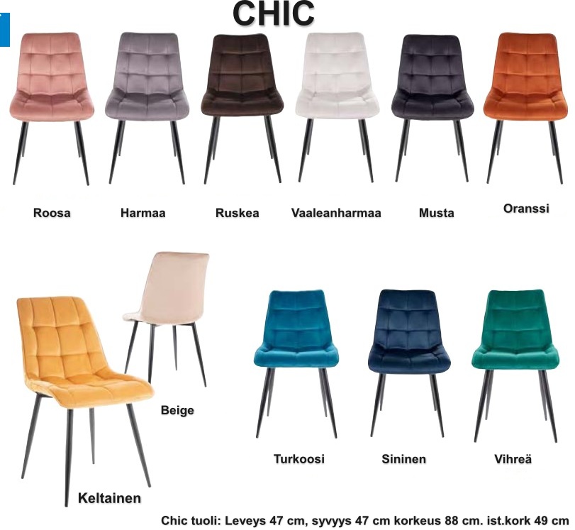 Saatavilla kokoluokissa 120–139 cm ja 140–159 cm, Fresno sopii täydellisesti eri kokoisiin tiloihin ja tarpeisiin. Kokonaisuuden voi viimeistellä Chic-tuoleilla, jotka ovat verhoiltu pehmeällä sametilla useissa tyylikkäissä väreissä.